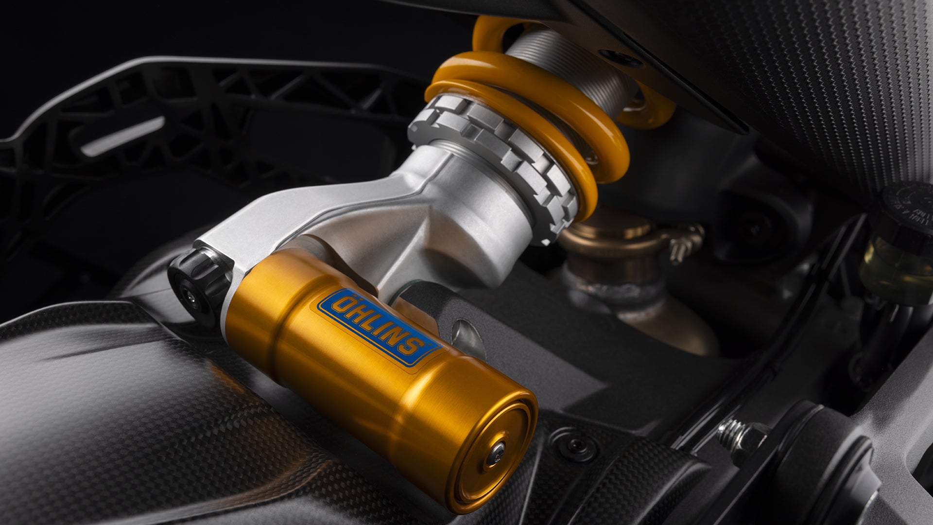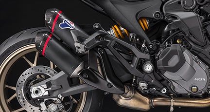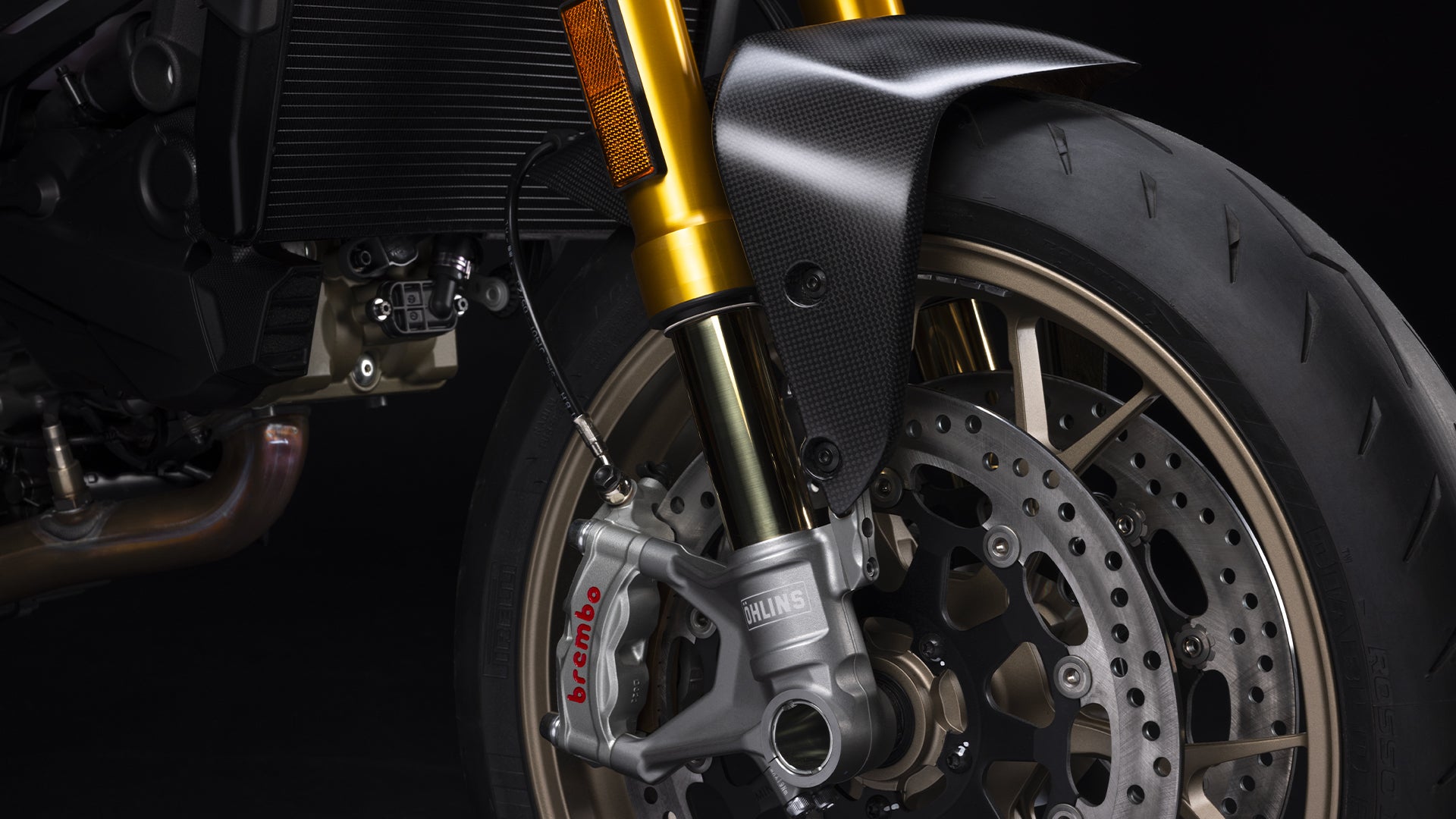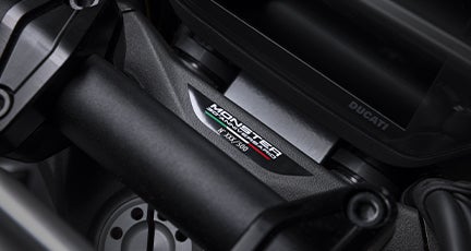 La Monster 30 Aniversario ofrece unas prestaciones emocionantes con el máximo control, gracias a un chasis evolucionado y un equipamiento técnico mejorado con llantas de aluminio forjado y amortiguador de dirección Öhlins, para una conducción aún más ágil, eficaz y divertida.